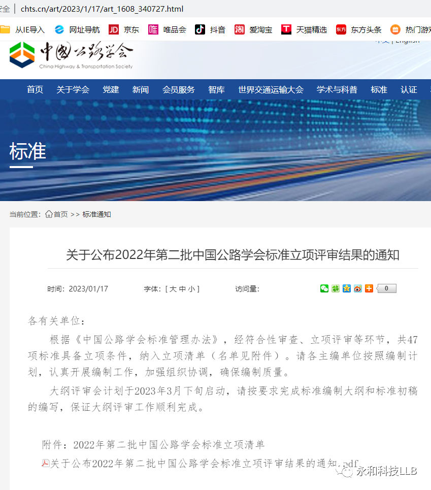 • 熱烈祝賀西安永和科技有限公司“反應式高黏冷拌冷鋪瀝青路面技術”通過中國公路學會團體標準初審認定